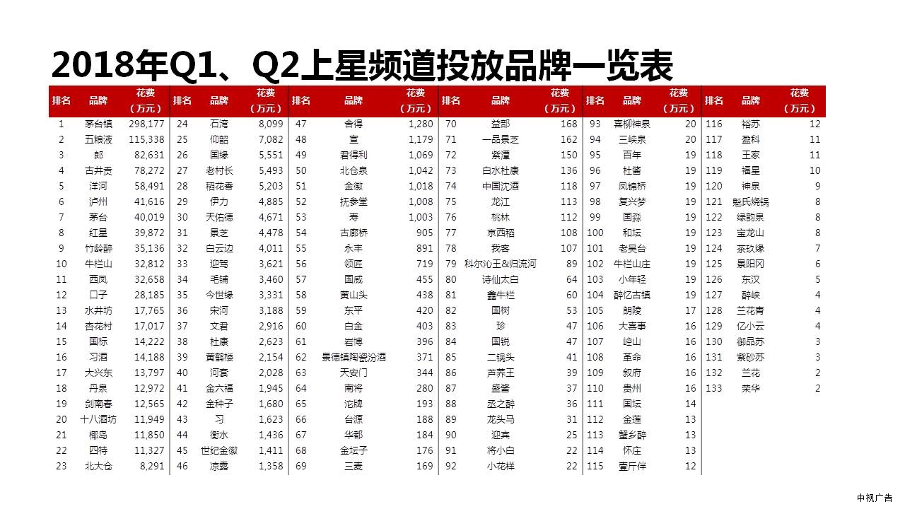 2018年Q1Q2白酒行業(yè)上星頻道投放分析
